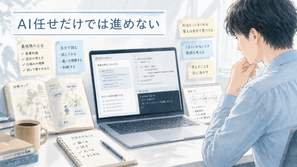 2026.04.09 作って気づいたこと アプリ開発はもっと遠いと思っていた。AIと進めたら構想が想像以上の速さで形になった リード文 アプリ開発というと、何度も詰まりながら、時間をかけて少しずつ前へ進むものという印象がありま… 記事を読む